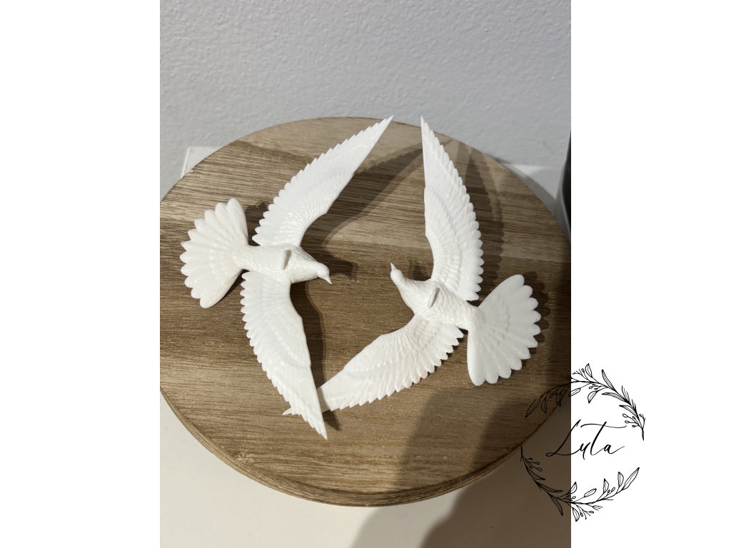 Holubice jsou vždy dodávány v páru. Dekorace jsou vytvořené pomocí 3D tisku z materiálu PLA