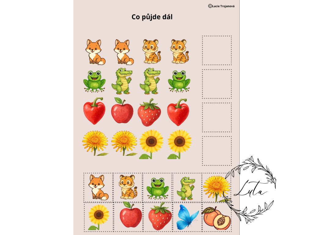 Logické řady „Co následuje?“: Úkoly na doplňování barevných sekvencí, které rozvíjejí předvídavost a logiku.