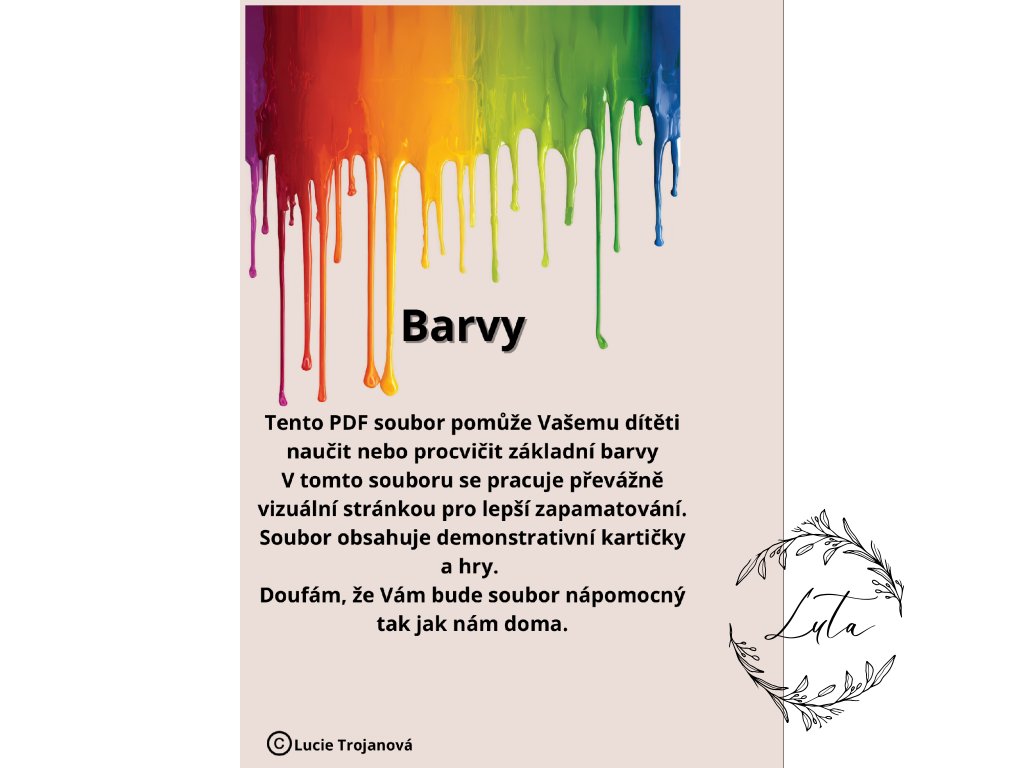 Naučte své děti poznávat barvy hravě, logicky a kreativně! Tento komplexní PDF soubor je navržen tak, aby dětem nenásilnou formou představil svět barev a zároveň rozvíjel jejich klíčové schopnosti – od jemné motoriky až po logické uvažování. Je to ideální materiál pro rodiče, kteří chtějí smysluplně zabavit děti doma, i pro učitelky v mateřských školách.