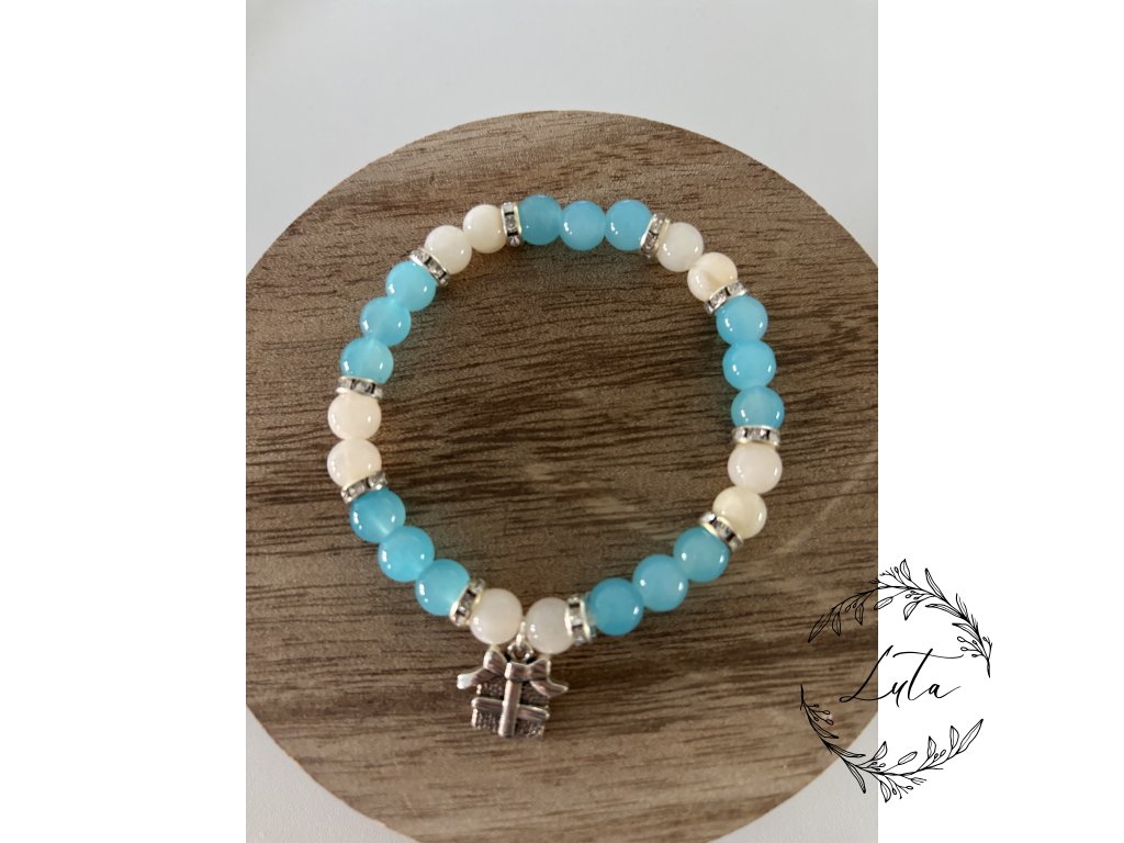 Náramek z plastových korálků s bižutérním komponentem. Náramek je o průměru 18cm. Výrobek je zabalen do dárkového sáčku s tématickou kartičkou.