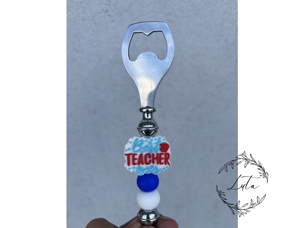 Otvírák je z nerezové oceli doplněný silikonovými korálky.