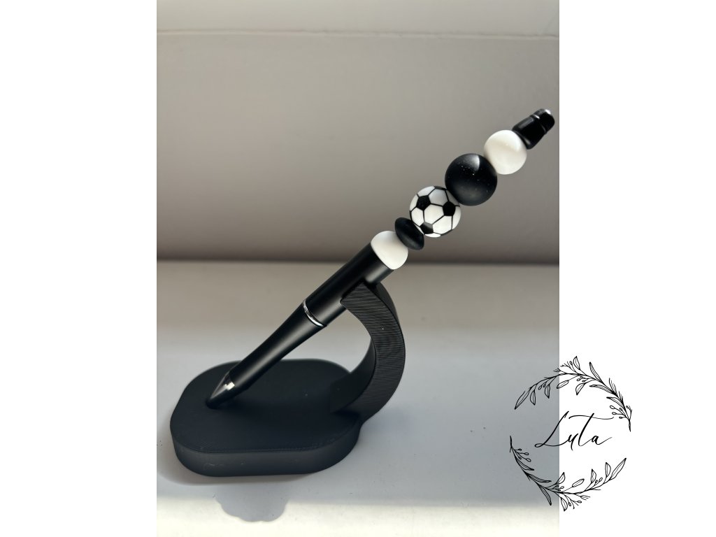 Propiska s černou náplní. Dekorativní vršek je vytvořený ze silikonových korálků.
