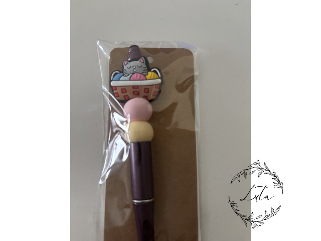 Propiska s černou náplní. Dekorativní vršek je vytvořený ze silikonových korálků.