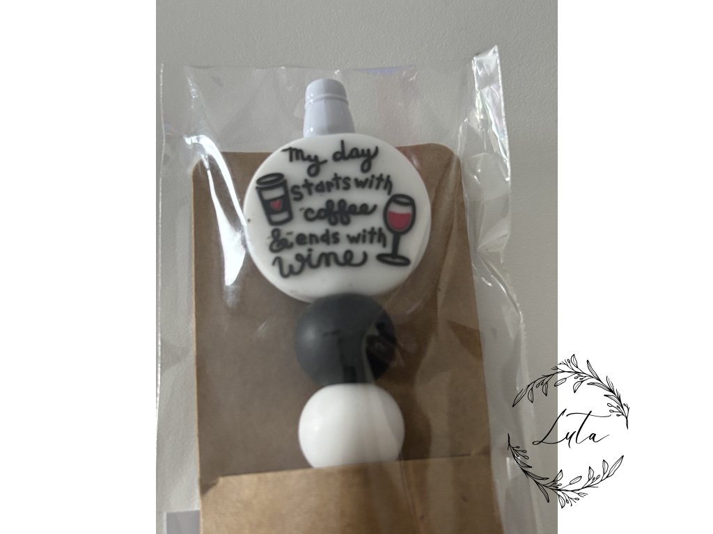 Propiska s černou náplní. Dekorativní vršek je vytvořený ze silikonových korálků.