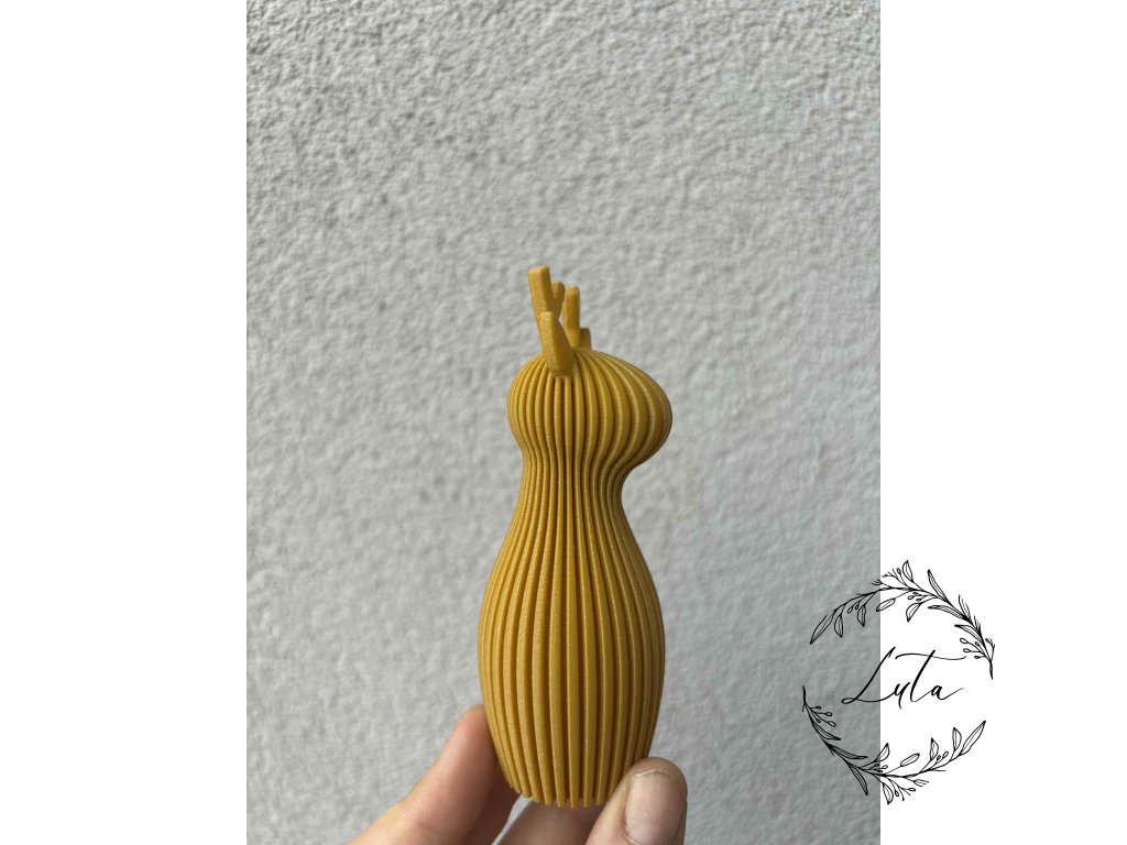 - Sošky a dekorace jsou vyráběny technologií 3D tisku z materiálu PLA, který je vyroben z biologicky rozložitelného kukuřičného nebo bramborového škrobu a je odolný do teploty přibližně 60°C. Proto výrobky nevystavujete zbytečně dlouhou dobu slunečnímu záření, mohlo by dojít k poškození
