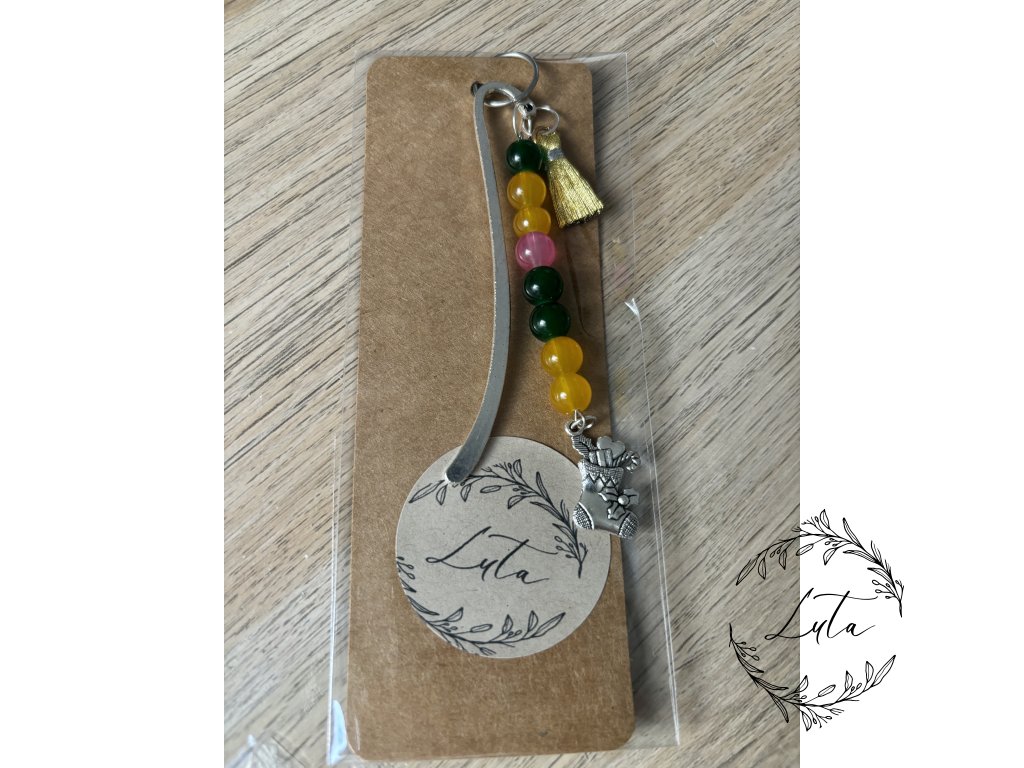 Záložka je vytvořená z korálků a bižuterních komponentů. Záložka je dodávána v dárkovém balení. Barva záložky i přívěsku je určována skladovými zásobami.